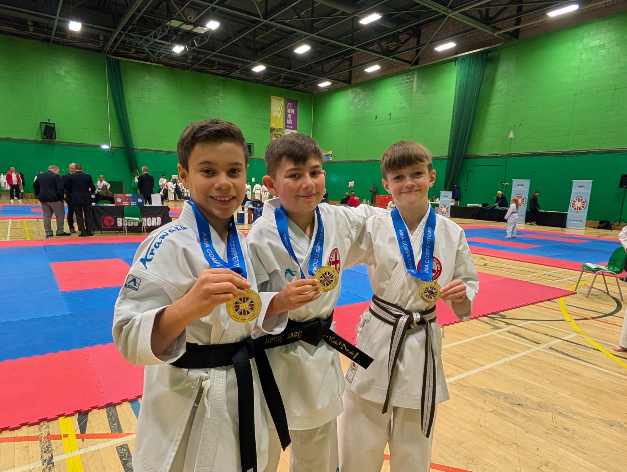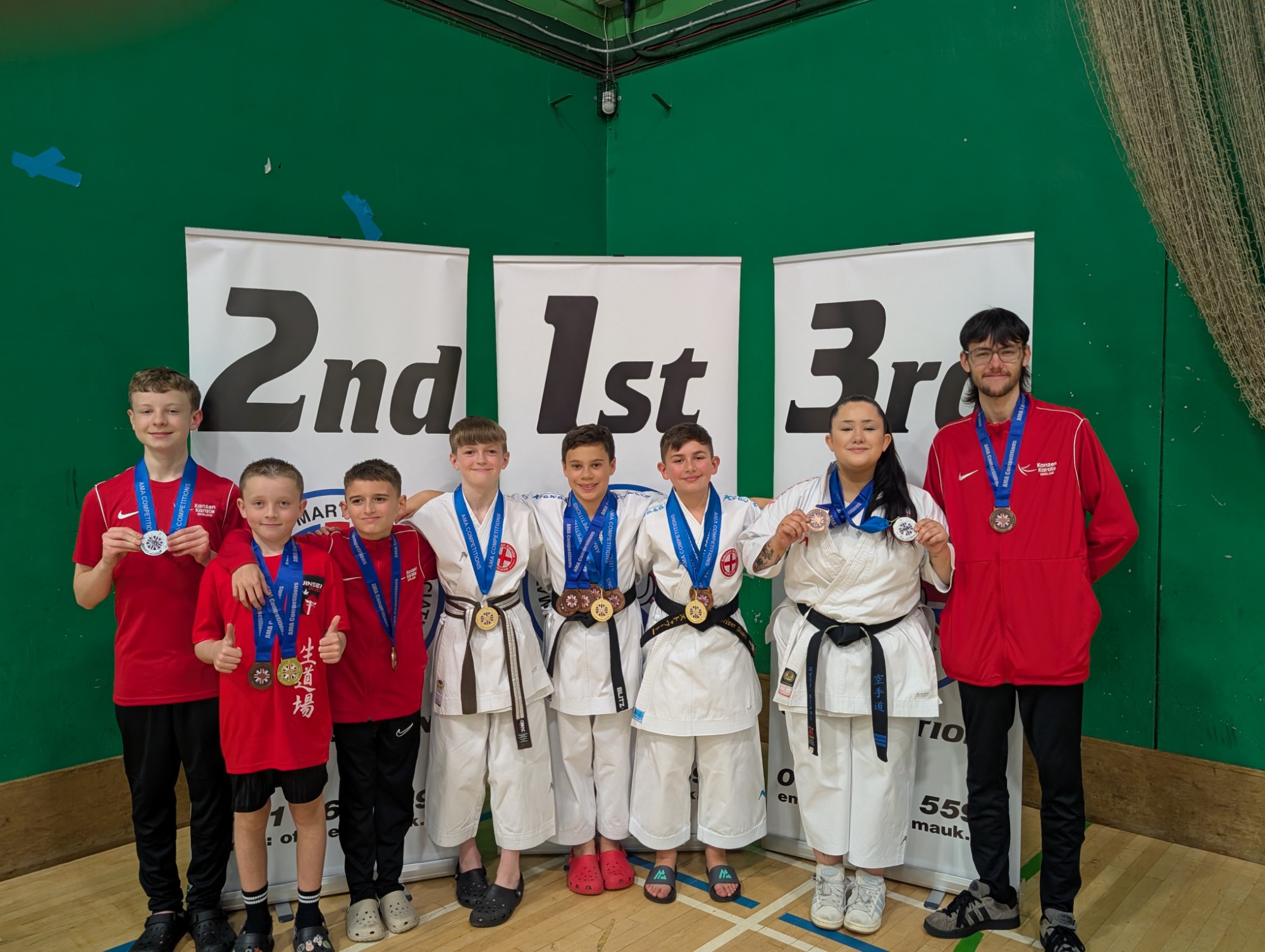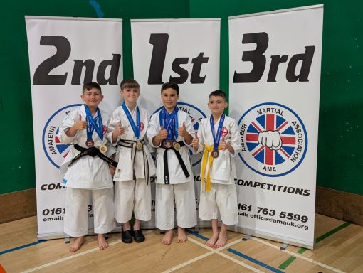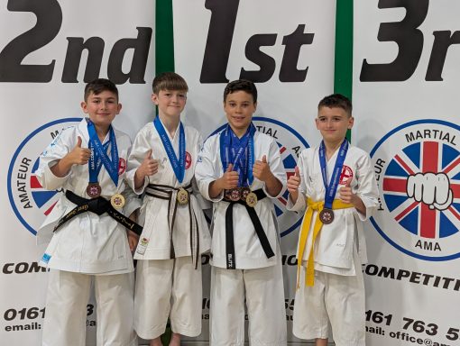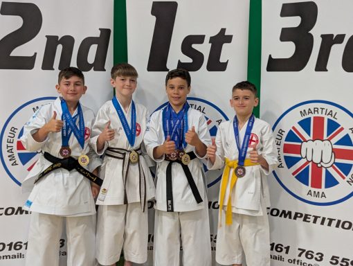 Jinsei competing as Kanzen Karate England attended the AMA Northern Championships in Bury. Nine Jinsei athletes competed and were won an amazing 20 medals! Here are some pictures of the day